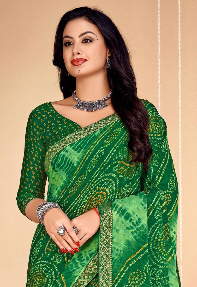 Roop kashish green color bandhani print chiffon printed saree and blouse piece