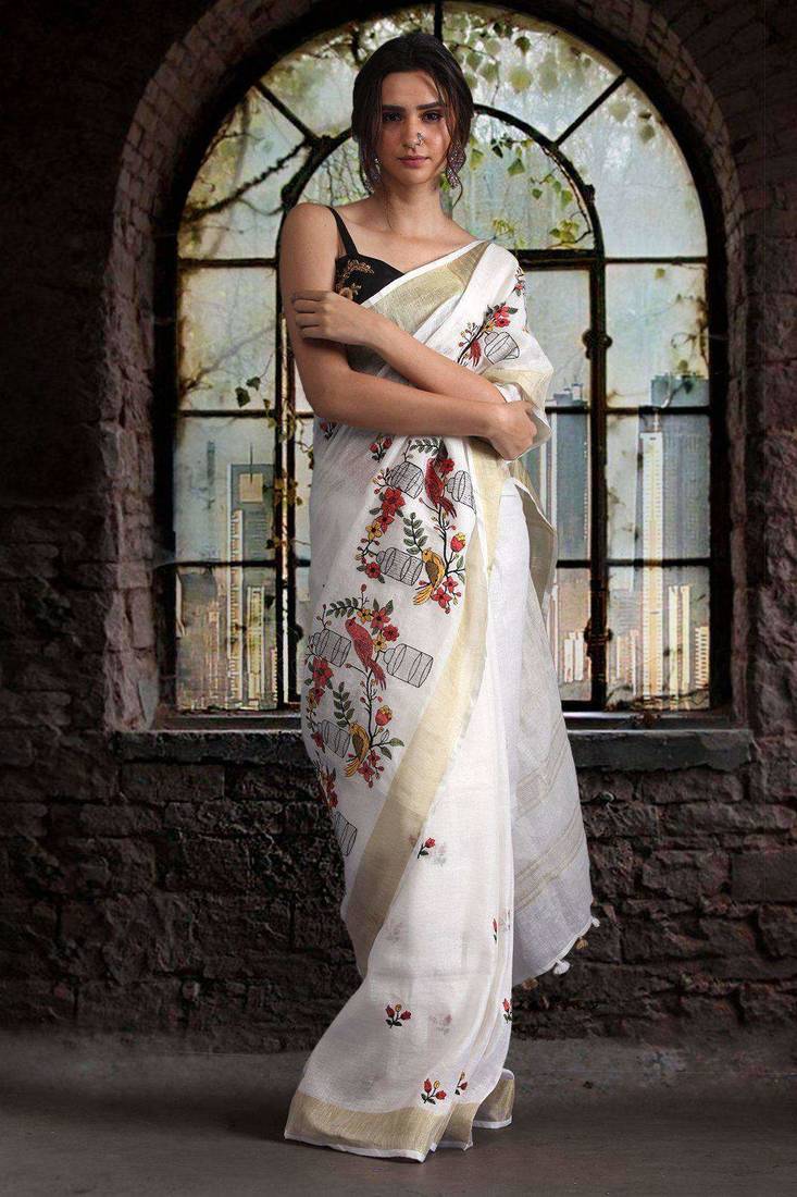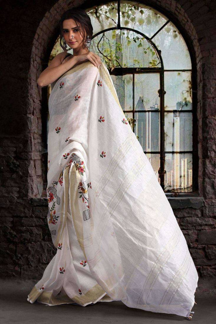| Product Name | White Linen Saree With Embroidery | |