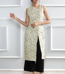 White printed linen stitched kurti
