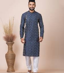 Navy blue designer festive wear blended cotton kurta-pajama