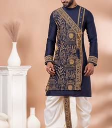 Navy blue designer festive wear viscose kurta-pajama