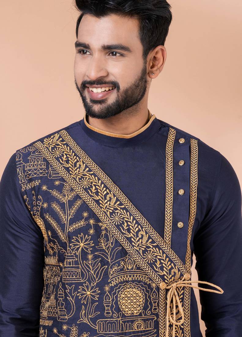 | Product Name | Navy Blue Designer Festive Wear Viscose Kurta Pajama | |