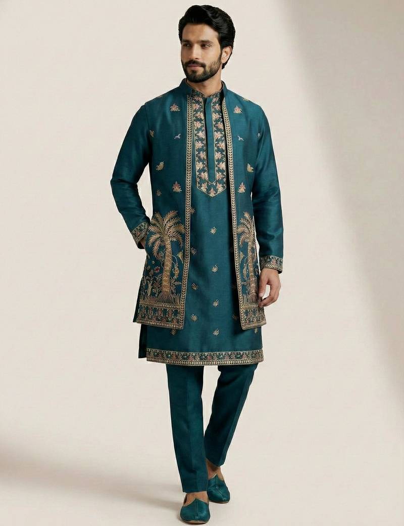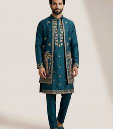 Teal doniyar shartin men's kurta pyjama with long jacket