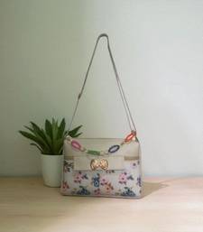 Women cream floral sling bag bow chain mini stylish shoulder purse