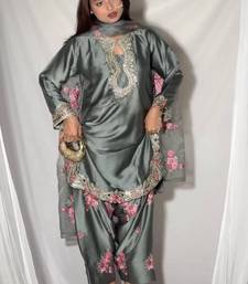 Grey japanese satin farshi salwar set with embroidery and sequence work stitched