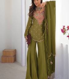 Olive green simar silk palazzo suit with embroidery and dupatta