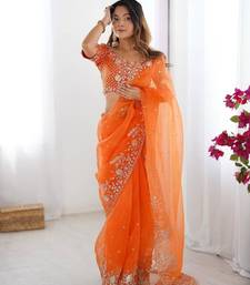 | Product Name | Orange Color Oregenza Silk Thread Sequince Embroidered Work Saree With Blouse | |