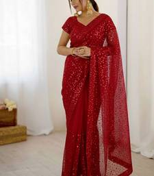 Premium red net saree with sequins & dori work