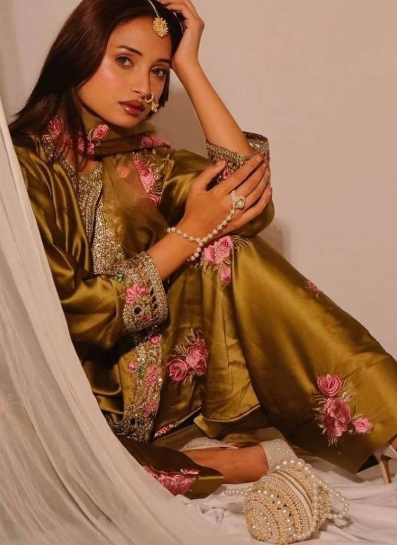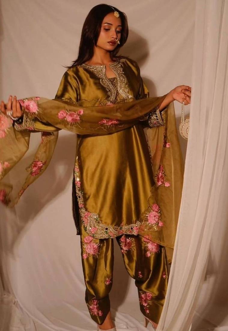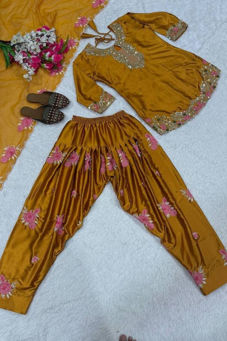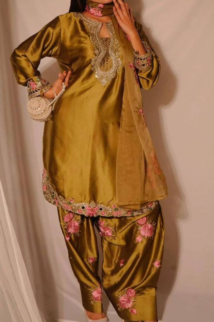 Trendsetter japan satin embroidered farshi salwar suit stitched
