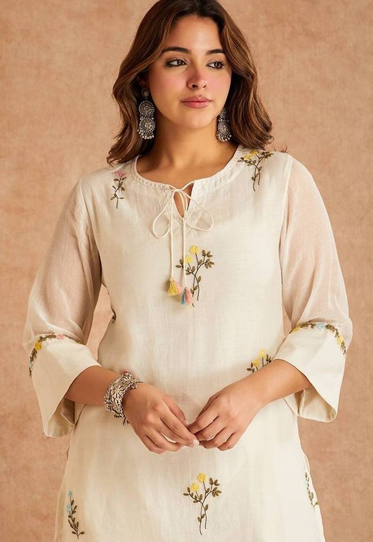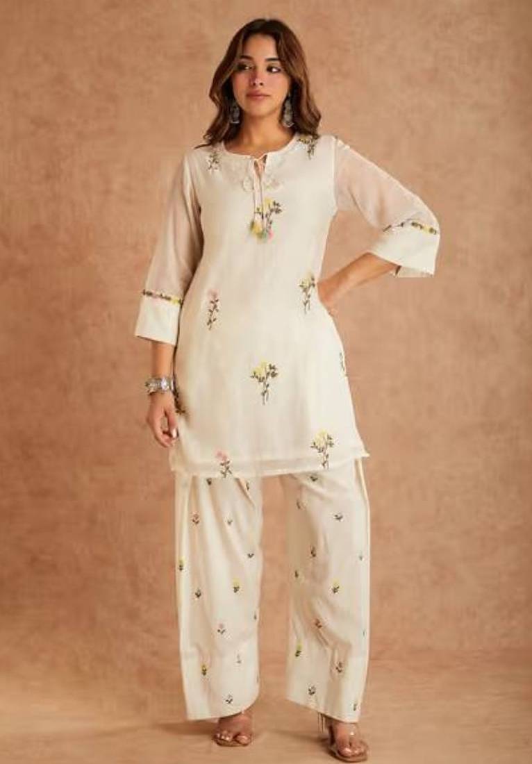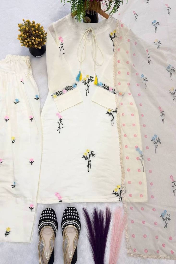 | Product Name | White Cotton Silk Suit With Multi Needle Work & Organza Dupatta | |