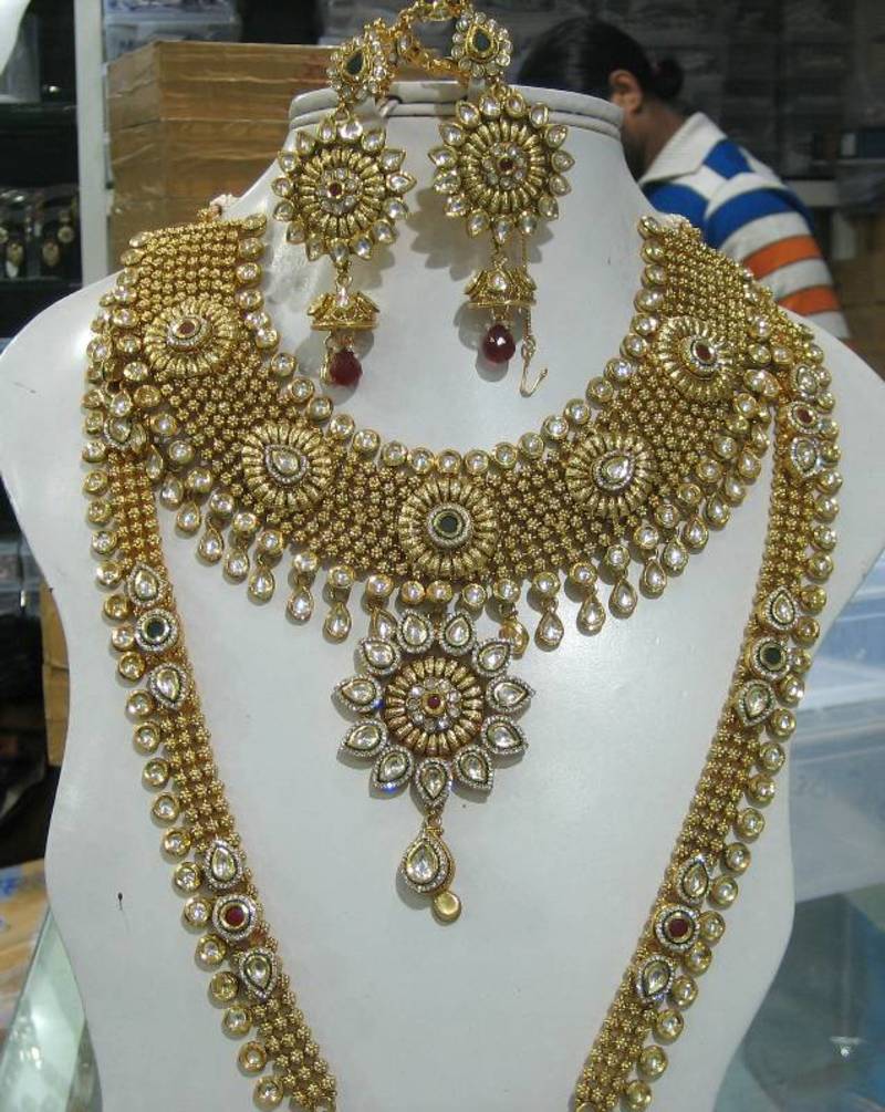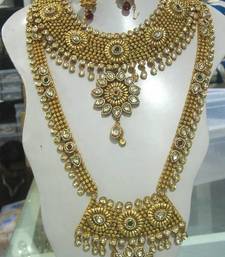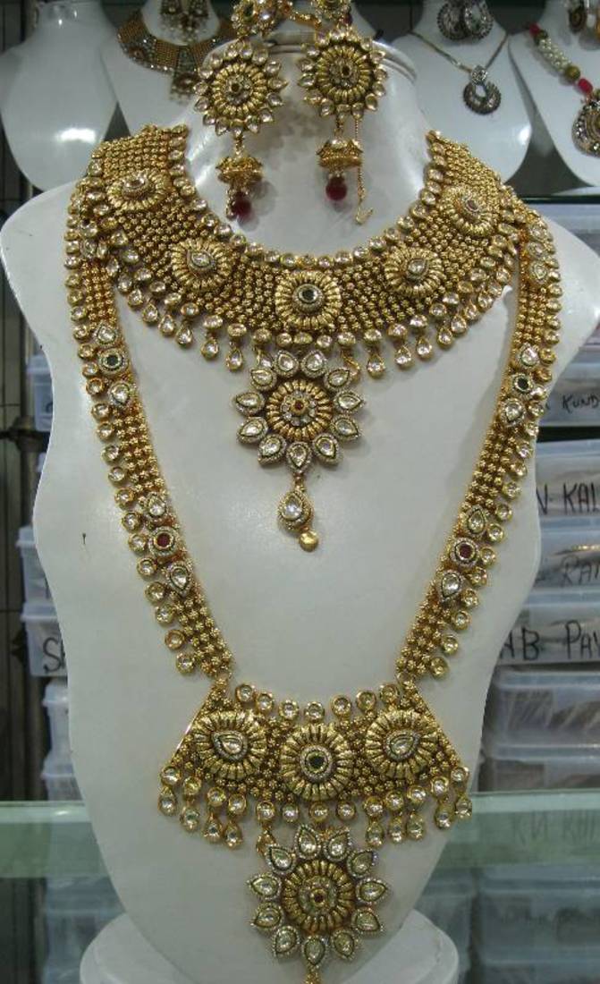 | Product Description | The Crystals Stones Are Set Using A Handmade Technique. Material Used Is Crystals, Kundan, Pearls, Gemstones, Precious Stones. The Entire Setting Takes A Long Time To Make. This Is A Unique Combination Of Crystal And Stone Work. The Enamel Is A Beautiful Deep Colored Exotica. 8 Pcs Bridal Set, 1 Pc Matha Patti With Tikka, 1 Pair Earrings, 1 Pair Haath Panja,1 Pc Choker, 1 Pc Raani Haar; 1 Pc Nose Ring Colors: Red, Green This Set Is Figured For Every Women. Make A Statement With This Unique One Of A Kind Ring And Feel Like Real Princess. If You Love Unique And Different With A Traditional Twist Then This Is A Piece For You. Size: Material Used: Crystals, Kundan, Pearls, Gemstones, Precious Stones Colors |