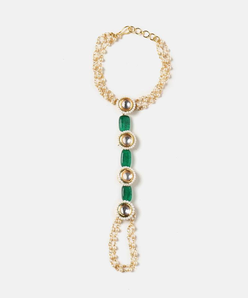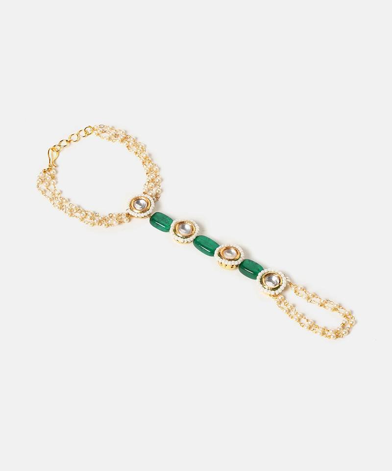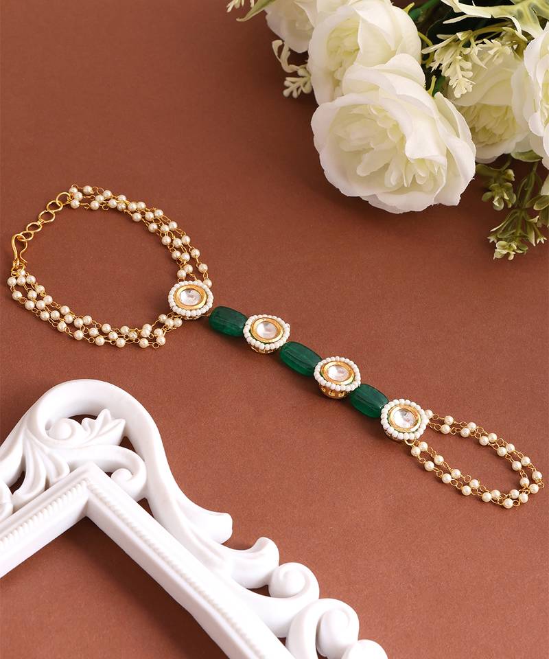 | Product Name | Gold Plated Kundan Green Stones Haath Phool | |