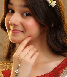 Gold plated kundan green stones haath phool