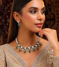 | Product Description | This Gold Plated Kundan Green Stones Necklace Set Showcases Timeless Elegance And Refined Craftsmanship. Featuring Green Stones With Classic Kundan Detailing, It Enhances Festive And Bridal Outfits. Perfect For Weddings And Celebrations, This Necklace Set Adds Richness And Charm To Traditional Ensembles.