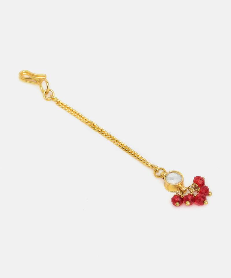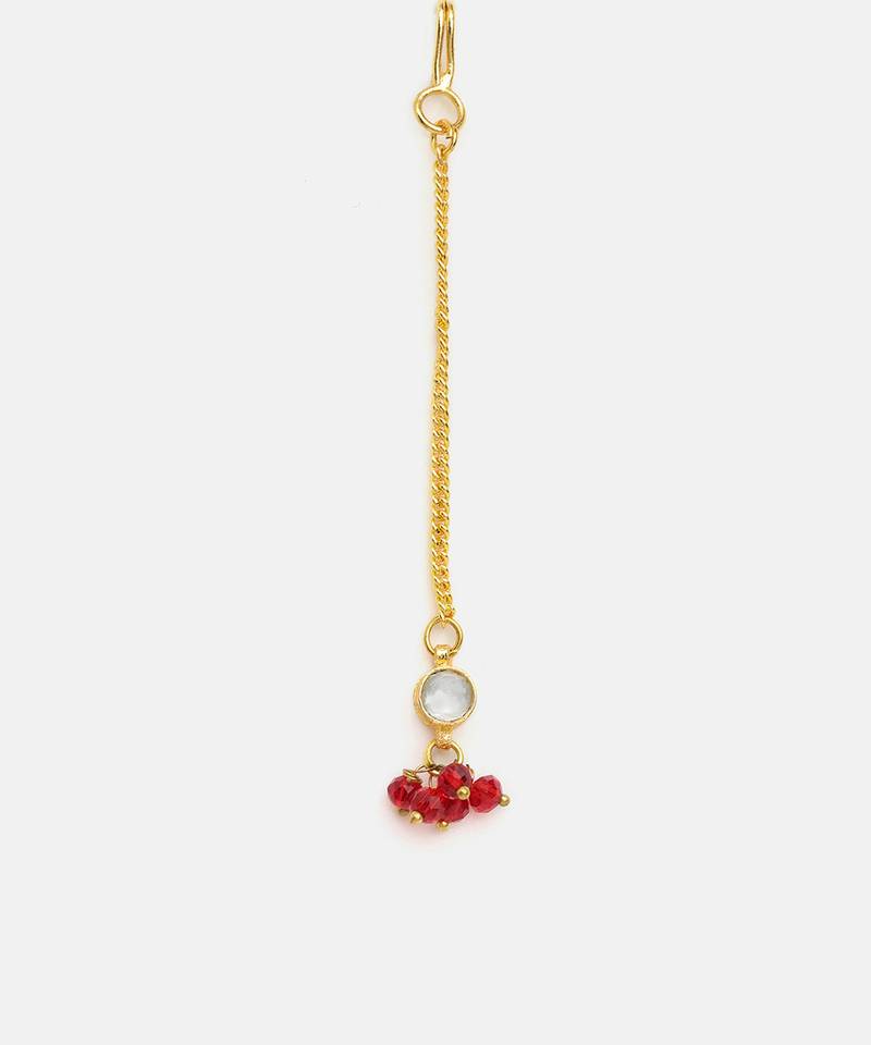 | Product Description | Featuring Deep Maroon Stones, This Gold Plated Kundan Maang Tikka Offers A Royal And Sophisticated Appeal. Intricate Detailing Reflects Traditional Artistry While Adding Richness To Bridal And Festive Looks. Perfect For Sarees And Lehengas, It Creates A Striking Focal Point For Your Hairstyle.