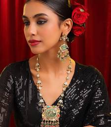 | Product Description | This Gold Plated Kundan Multicolor Stones Necklace Set Showcases Vibrant Artistry And Timeless Beauty. Embellished With Colorful Stones And Intricate Kundan Detailing, It Adds A Festive Accent To Traditional Outfits. Ideal For Weddings And Celebrations, This Necklace Set Pairs Gracefully With Sarees And Lehengas.