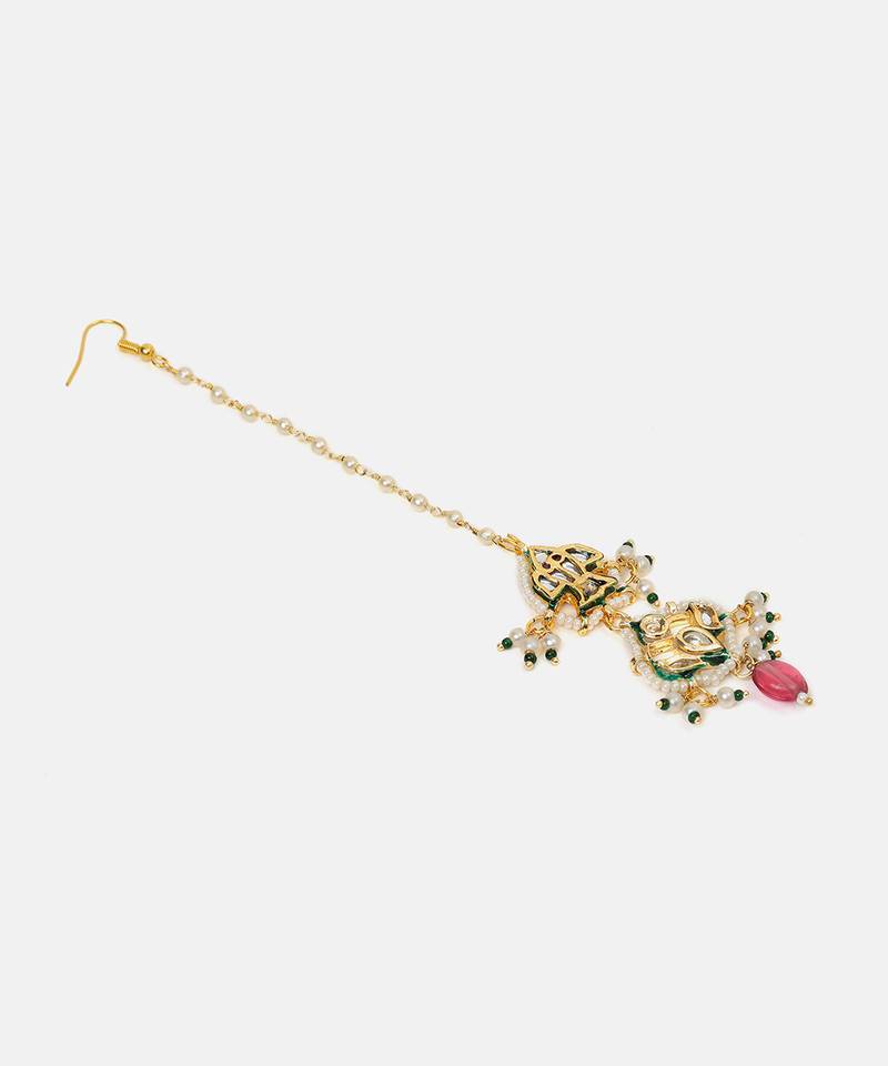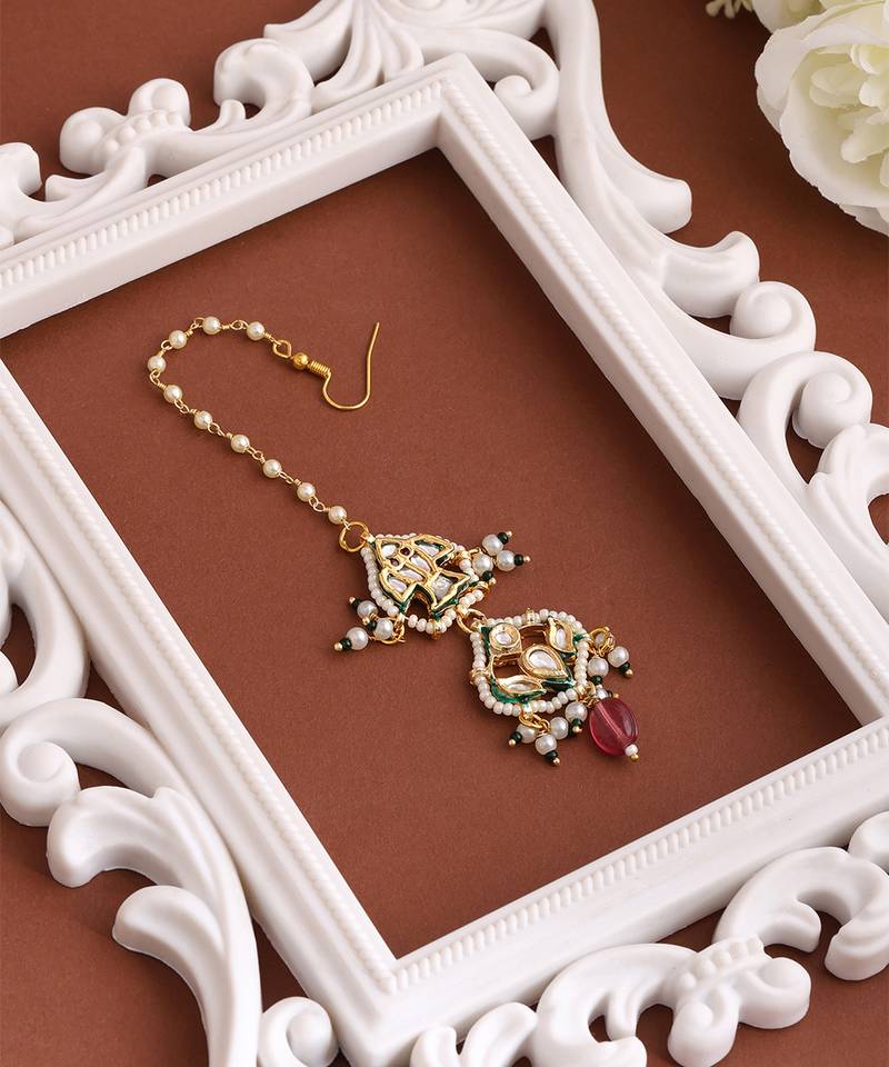 Product Name Gold Plated Kundan Pink Stones Maang Tikka