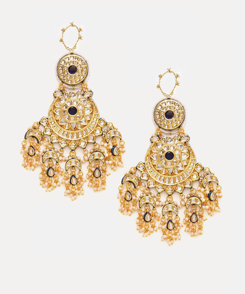 | Product Description | This Gold Plated Kundan Green Stone Chandbali Earrings Exudes Timeless Elegance With Its Classic Crescent Design And Intricate Craftsmanship. Adorned With Shimmering Kundan Detailing In Soft White Tones, It Adds A Refined, Regal Touch. Perfect For Weddings, Festive Occasions, And Celebrations, It Beautifully Complements Traditional And Contemporary Ethnic Ensembles.