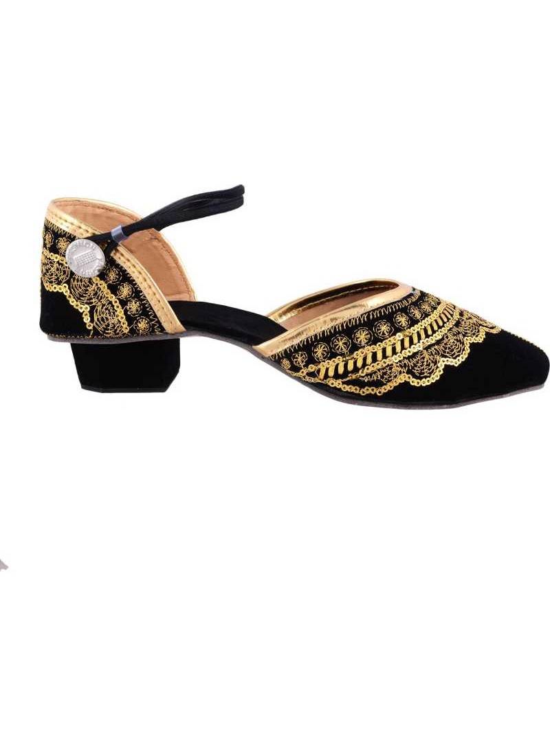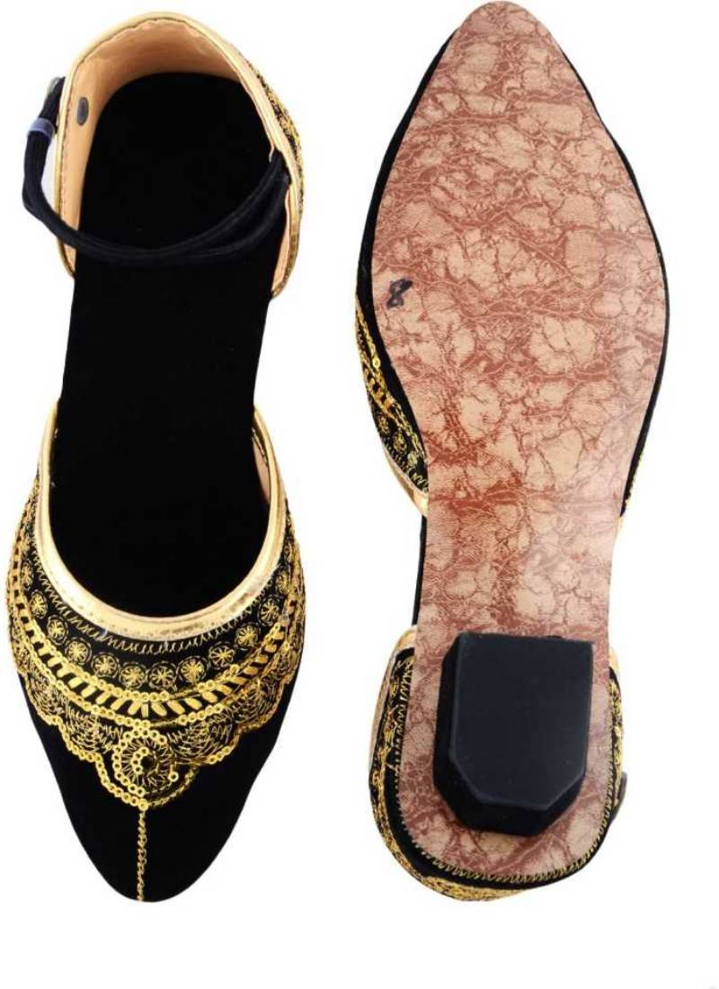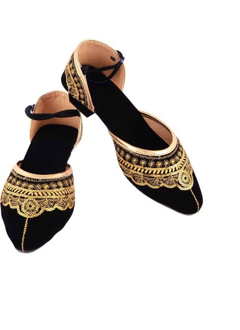 Rudra Black & Golden Pu Leather Traditional Mojari For Girl's & Women's Footwear