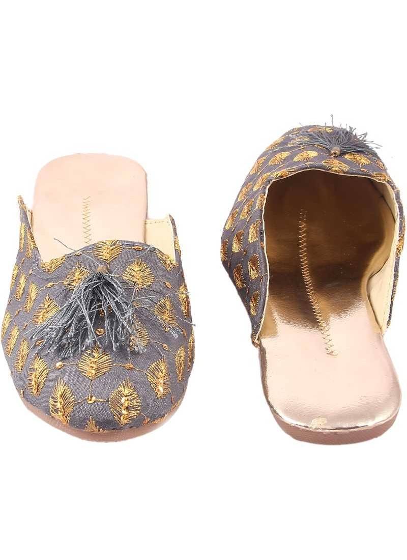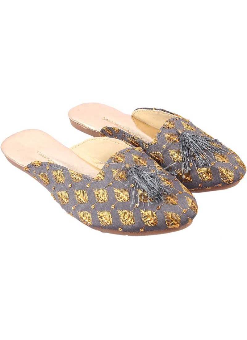 Rudra grey pu leather traditional mojari for girl's & women's footwear