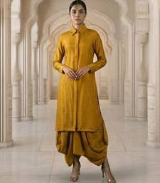 Mustard vichitra silk cowl skirt set stitched