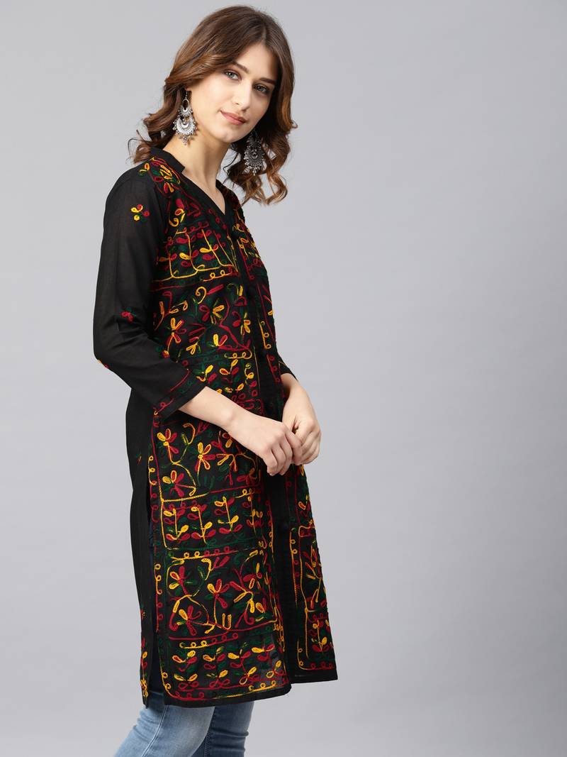 Multicolor hand woven cotton chikankari-kurtis