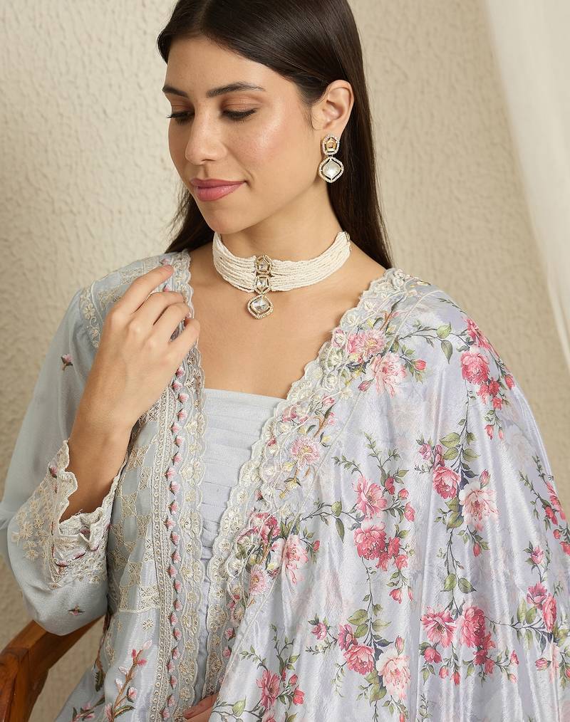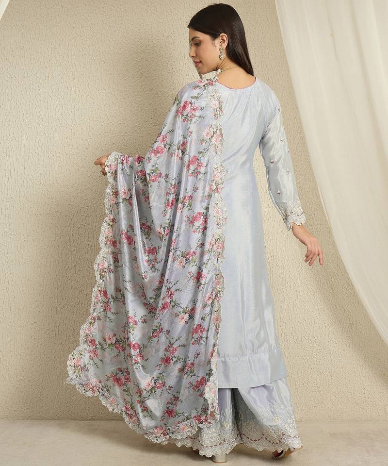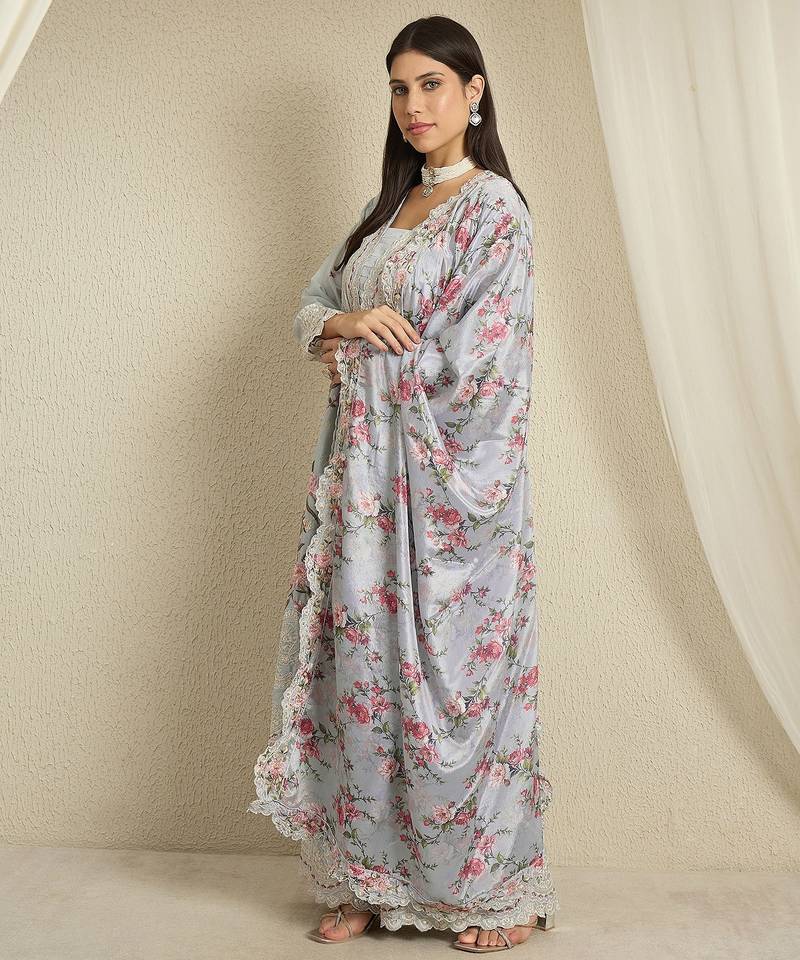 | Product Name | Pastel Blue Floral Palazzo Set With Scalloped Lace Border And Sheer Dupatta | |