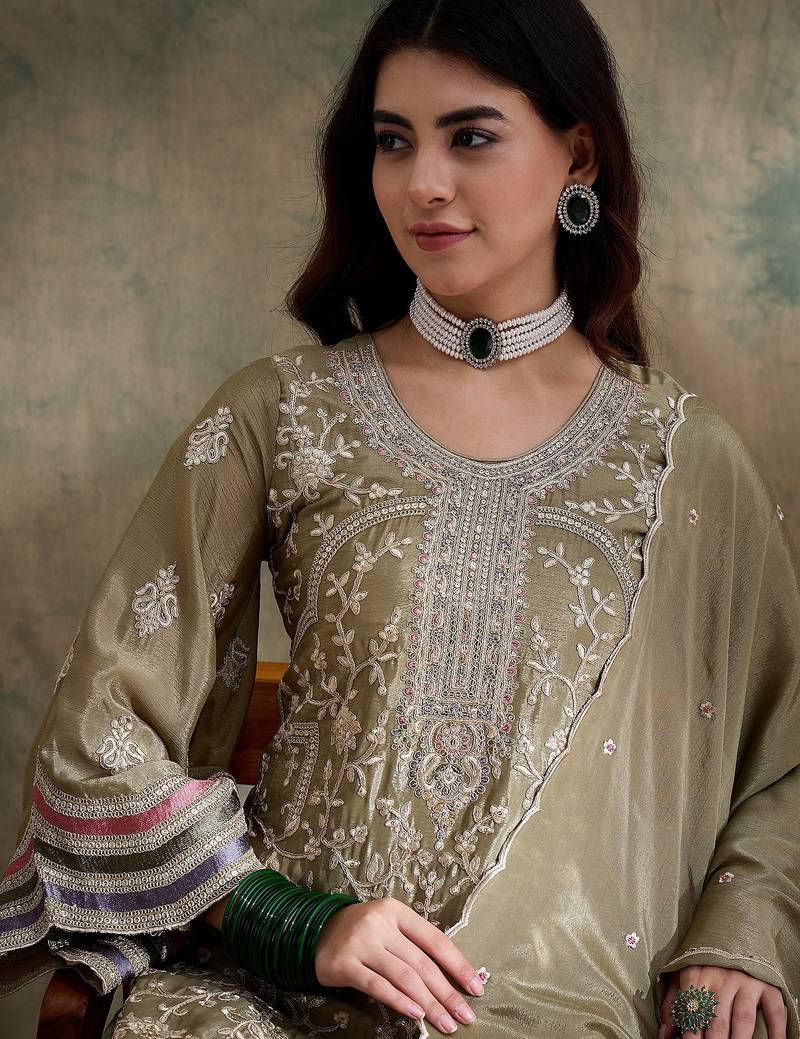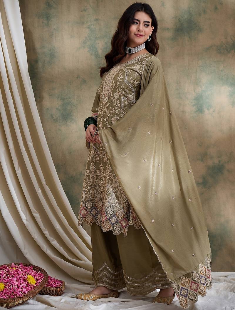 | Product Description | Elegant Mehendi Kurta Pant Set Crafted In Premium Chinon Fabric For A Soft And Graceful Drape. Straight Embroidered Kurta With A 42 Inch Length, Fully Stitched And Ready To Wear. Matching Chinon Pant With Santoon Inner, Stitched For Comfort And All Day Wear. Beautiful Embroidered Chinon Dupatta With A 2.15 Meter Length For A Complete Ethnic Look. Perfect For Festive Occasions, Family Functions, And Traditional Gatherings. |