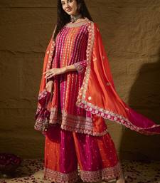 | Product Name | Saahmriga Embroidered Orange Chinon Round Neck Regular Sleeve Kurta Palazzo Sets | |