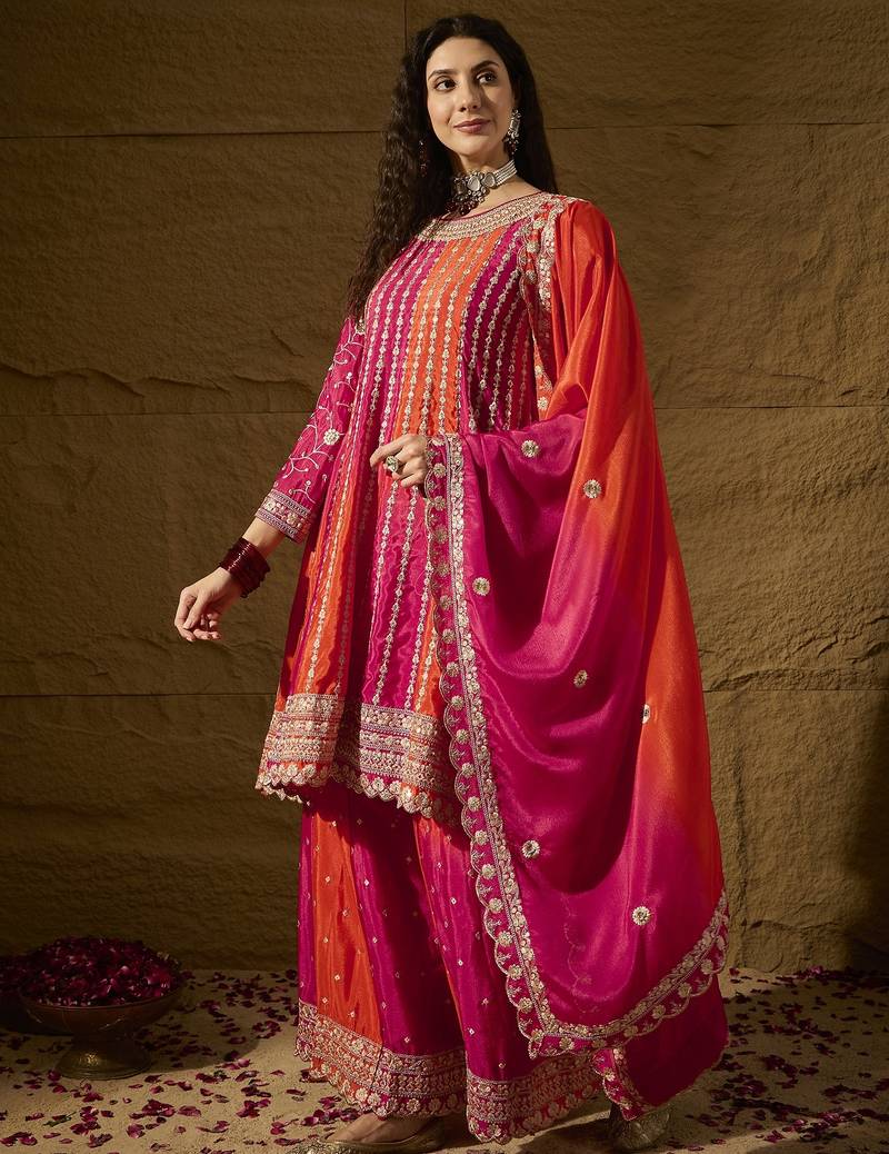 | Product Description | Vibrant Orange Kurta Sharara Set Made From Lightweight Chinon Fabric For All Day Comfort. Flared Stitched Kurta With Embroidery, Designed In A Flattering 42 Inch Length. Stylish Stitched Sharara Bottom In Chinon Fabric For An Elegant Silhouette. Matching Embroidered Chinon Dupatta Measuring 2.15 Meters For A Complete Look. Perfect Choice For Festive Wear, Celebrations, And Wedding Functions. |