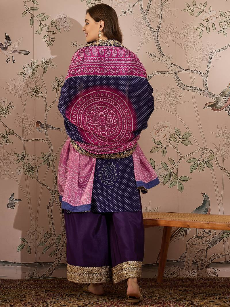 | Product Description | Elegant Purple Kurta Palazzo Set Crafted In Premium Chinon Fabric For A Soft And Flowy Ethnic Look. Straight Embroidered Kurta Top With A 43 Inch Length, Fully Stitched And Ready To Wear. Matching Stitched Palazzo Bottom In Chinon Fabric For Comfort And Ease Of Movement. Stylish Lace Detailed Chinon Dupatta With A 2.15 Meter Length For Added Elegance. Ideal For Festive Occasions, Parties, And Traditional Gatherings. |