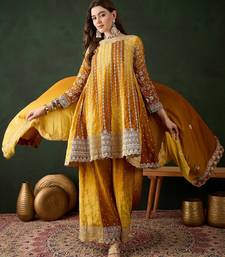 | Product Name | Saahmriga Embroidered Yellow Chinon Round Neck Regular Sleeve Kurta Palazzo Sets | |