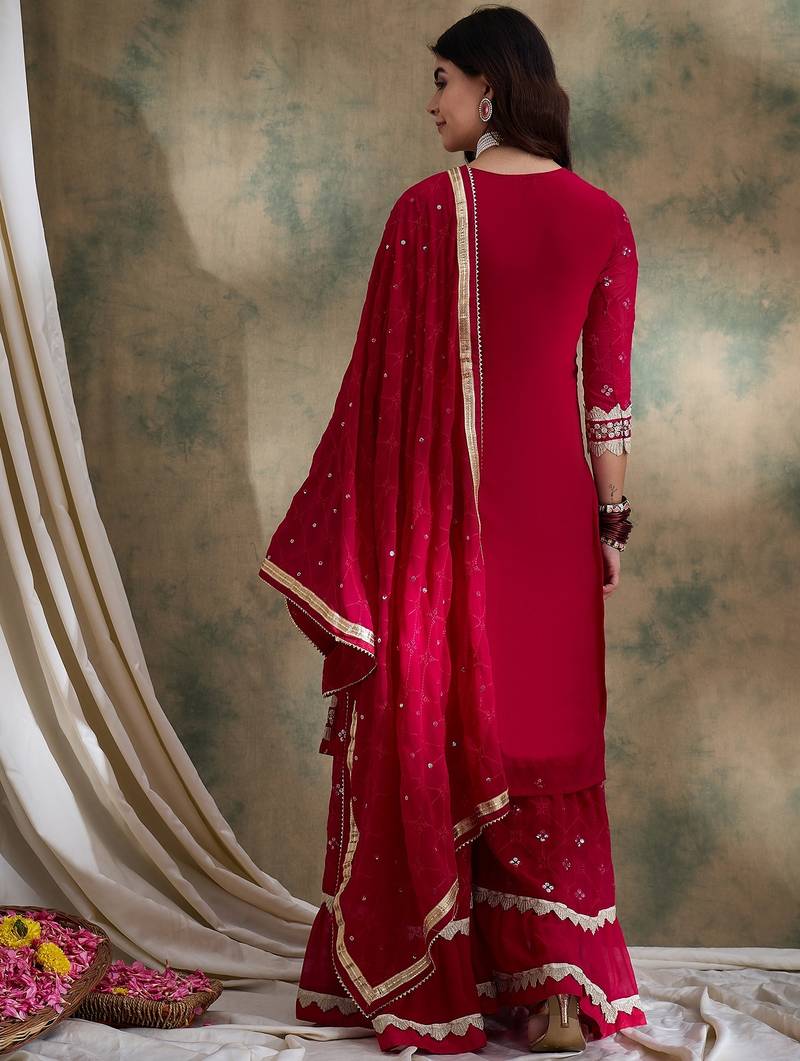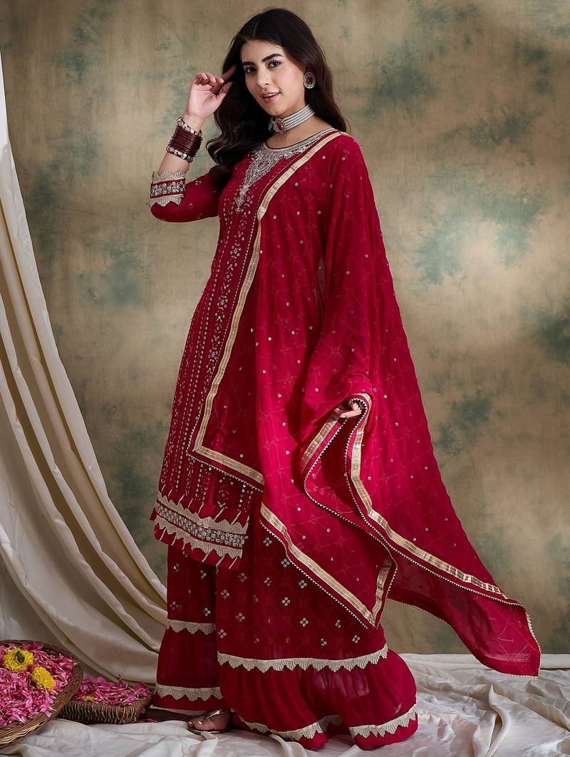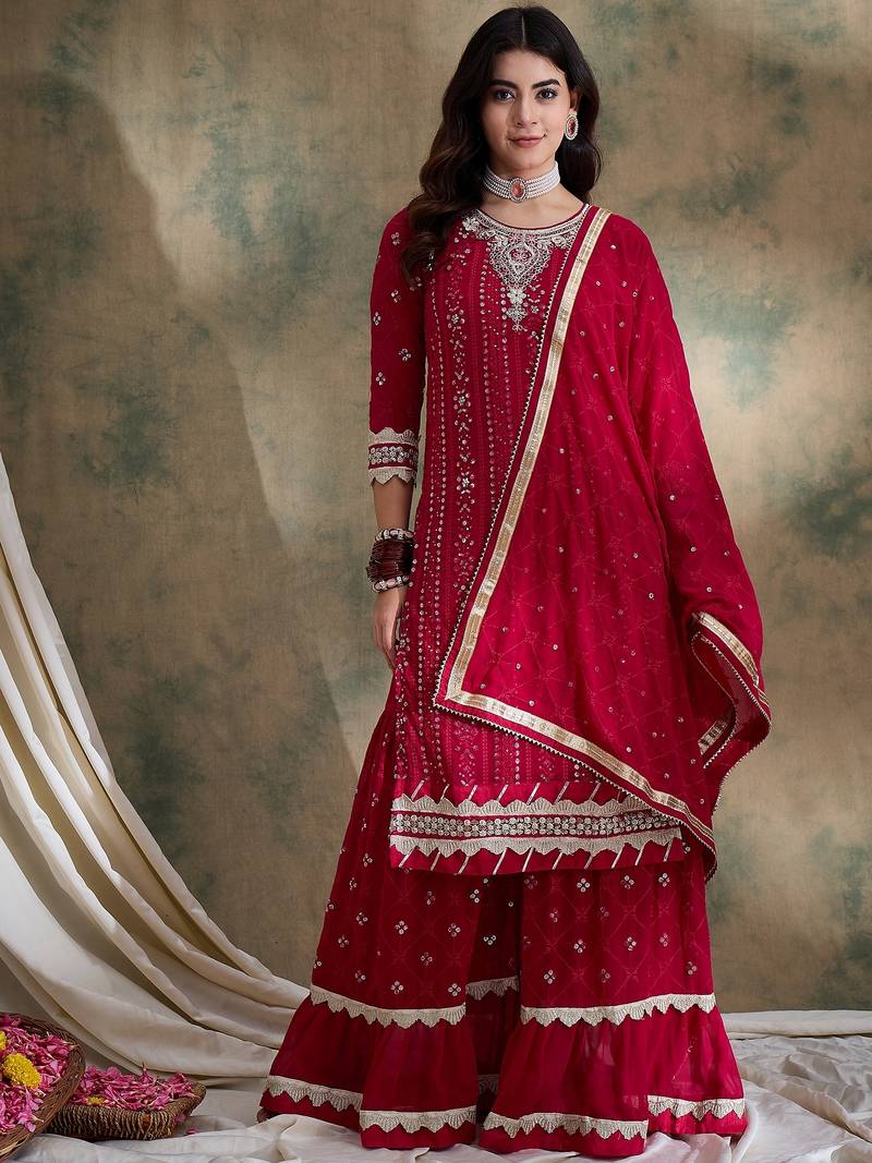 | Product Description | Beautiful Pink Embroidered Kurta Designed For Elegant Festive Dressing. Faux Georgette Stitched Kurta Offers A Soft, Flowy Drape. Comfortable Sharara Bottom With Stitched Finish And Santoon Inner. Matching Embroidered Dupatta Enhances The Overall Appeal. Perfect Choice For Weddings, Parties, And Cultural Events. |