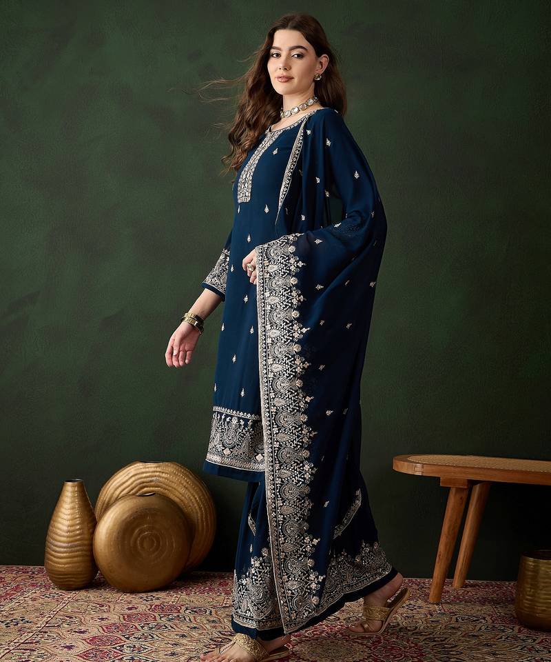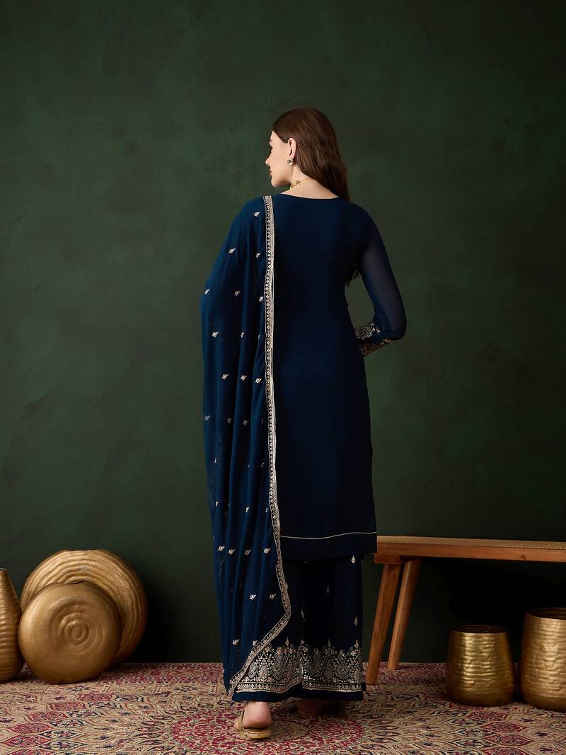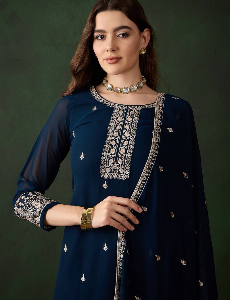 | • | Dupatta | : | Color- Blue / Fabric- Faux Georgette |