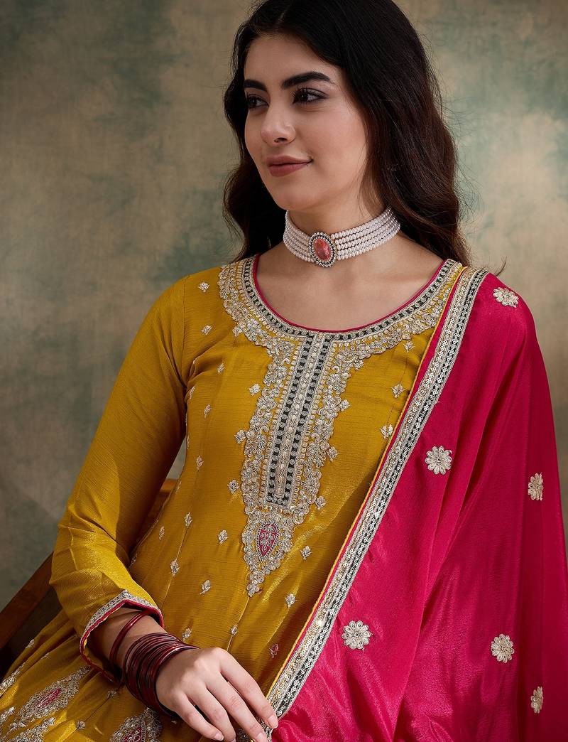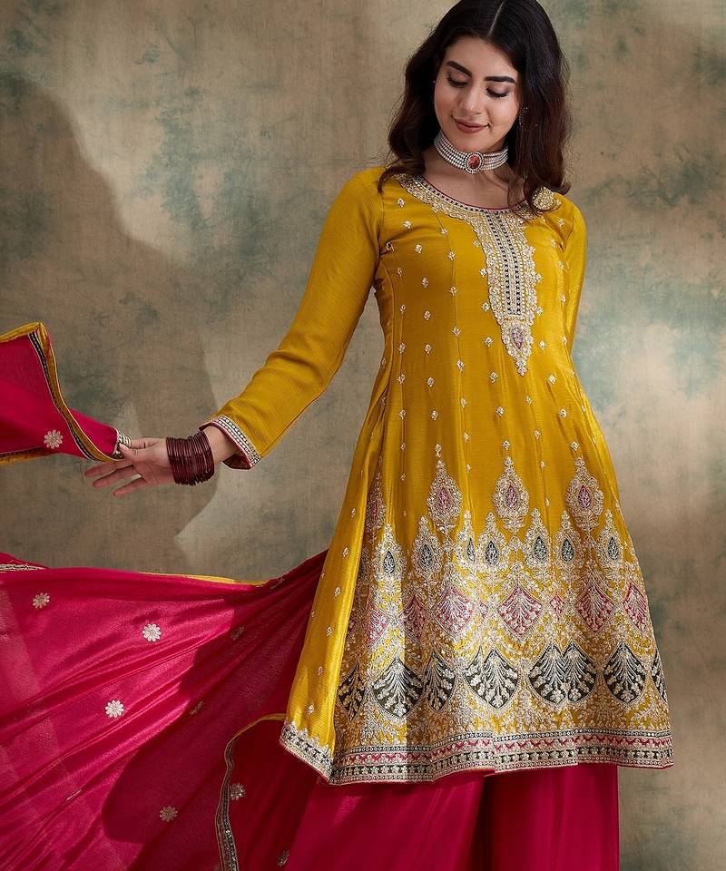 | Product Description | Vibrant Yellow Flared Kurta Made From Premium Chinon Fabric. Beautiful Embroidery Adds A Festive And Stylish Touch. Stitched Palazzo Ensures Comfort And Easy Movement. Matching Embroidered 2.15 M Chinon Dupatta Completes The Ethnic Look. Ideal For Haldi Functions, Festive Celebrations, And Party Wear. |