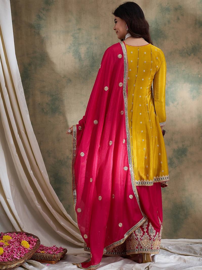 | Product Name | Yellow Chinon Flared Top With Bottom & Dupatta | |