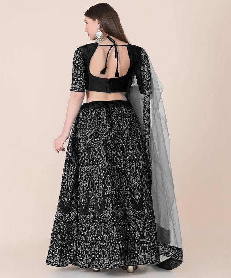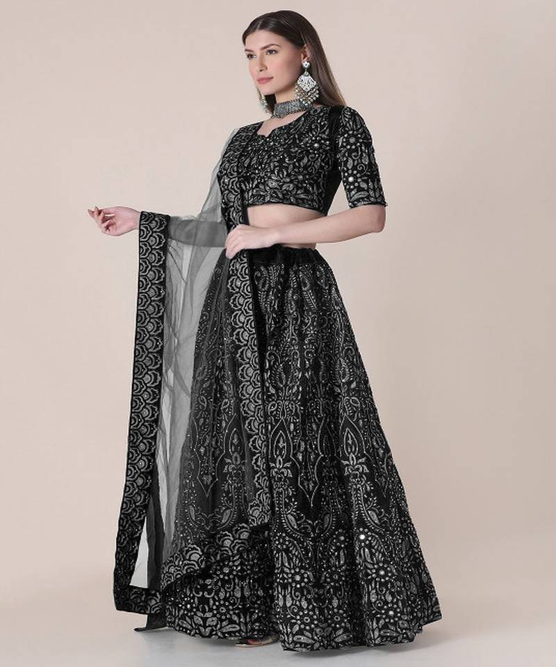 | Product Name | Black & Silver Toned Embroidered Thread Work Semi Stitched Lehenga & Unstitched Blouse With | |