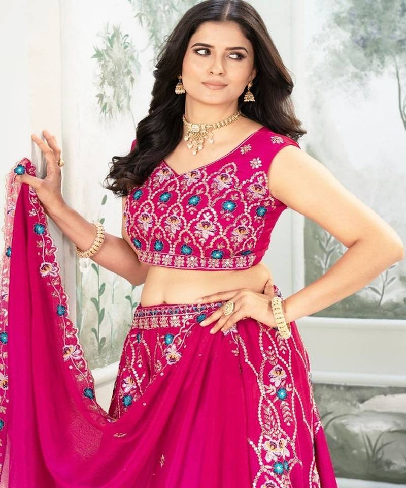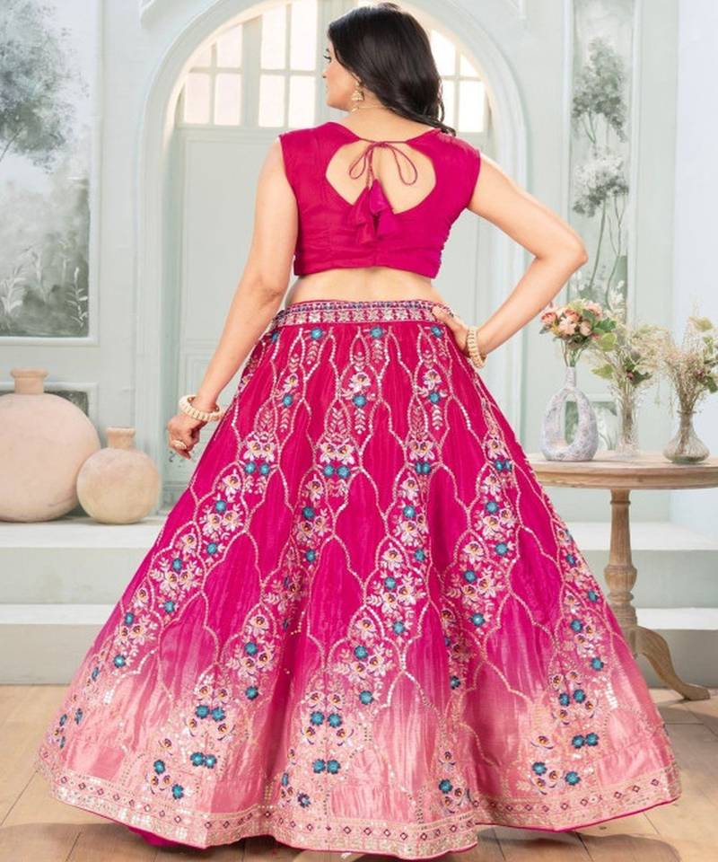 Embellished semi stitched chinon lehenga & unstitched blouse with dupatta