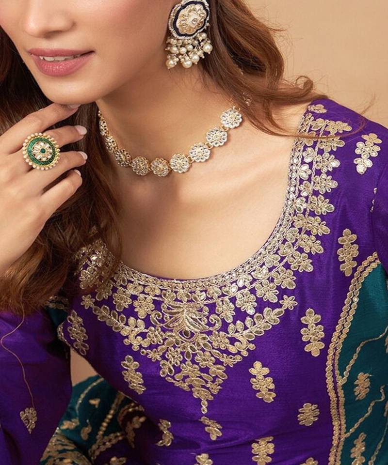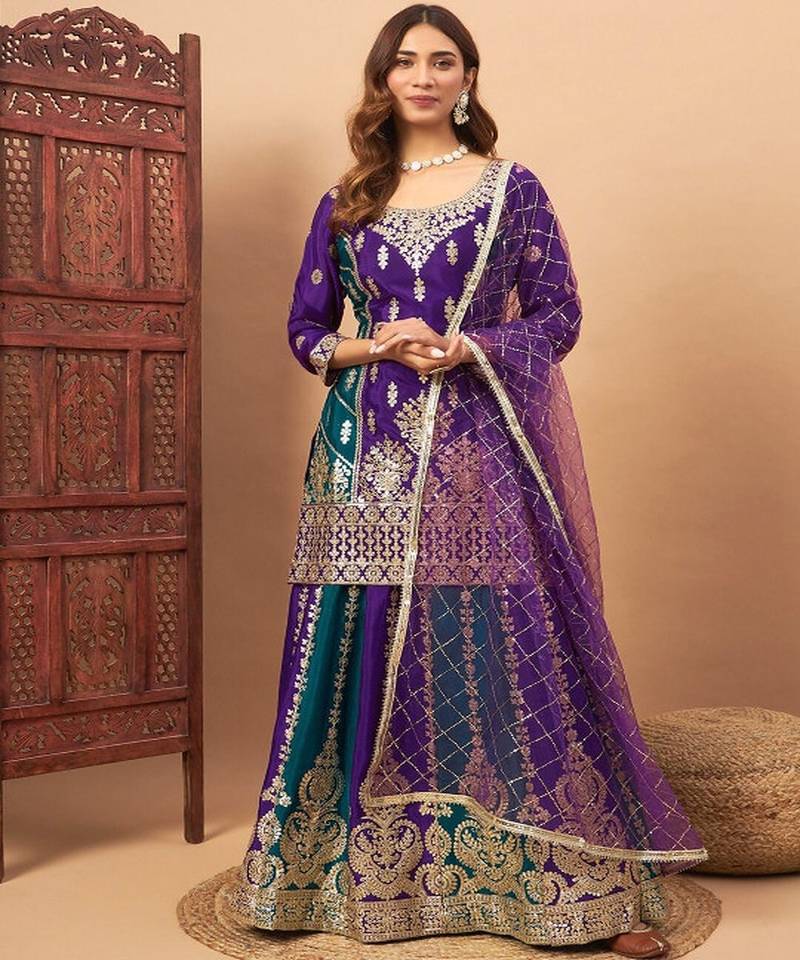 | • | Dupatta | : | Color- Purple / Fabric- Net |
