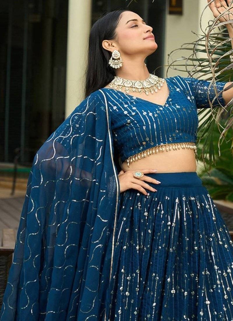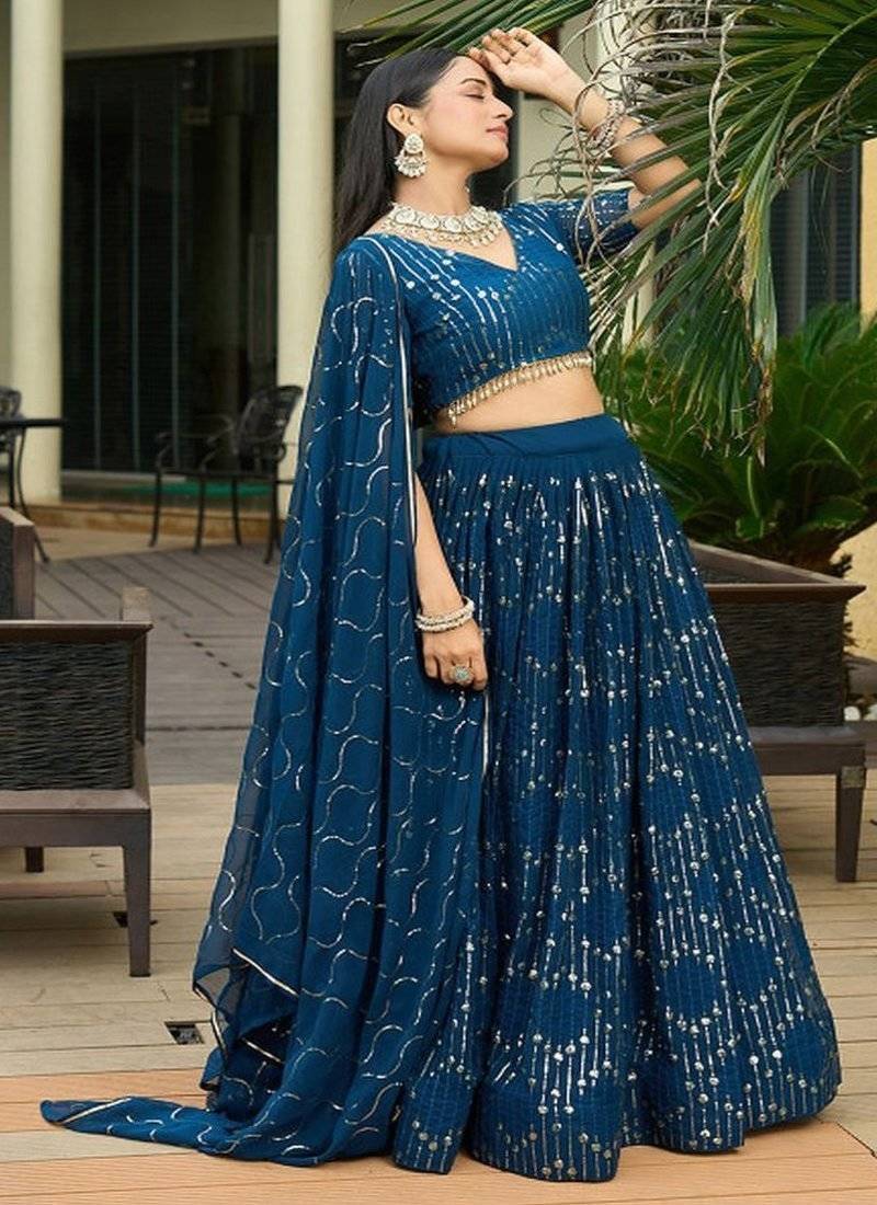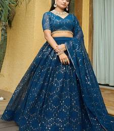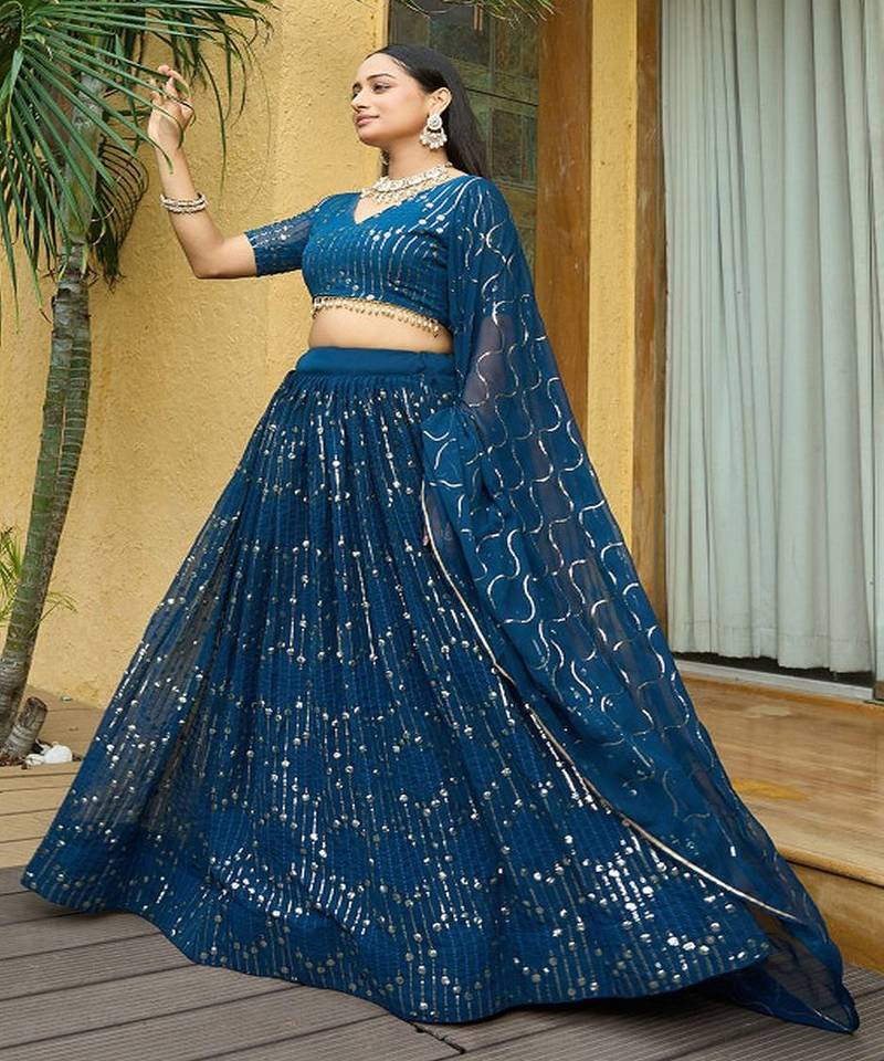 Embroidered sequinned semi stitched lehenga with unstitched blouse & dupatta