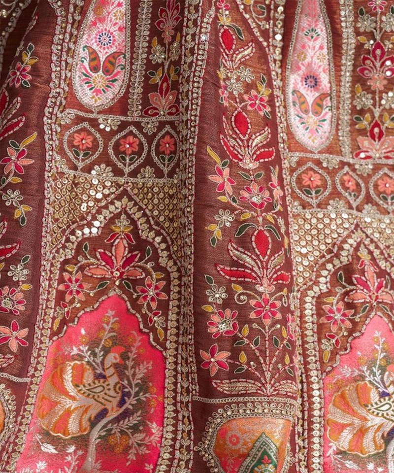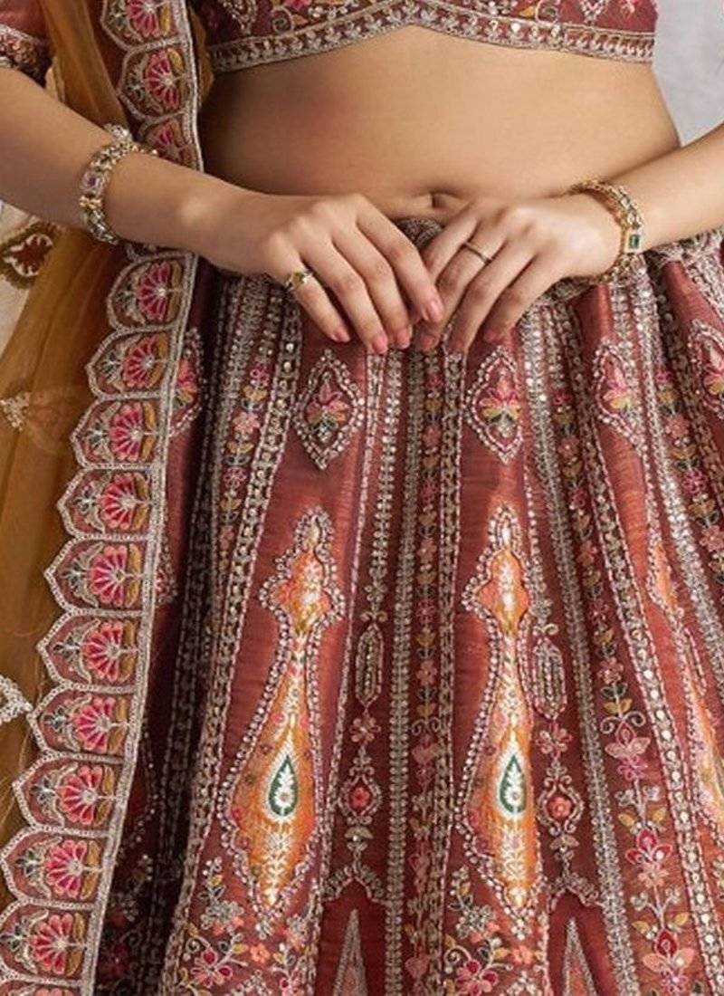 Embroidered thread work semi stitched lehenga & unstitched blouse with dupatta