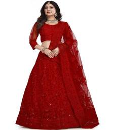 Embroidered thread work semi stitched lehenga & unstitched blouse with dupatta