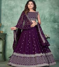 Embroidered thread work semi stitched lehenga & unstitched blouse with dupatta