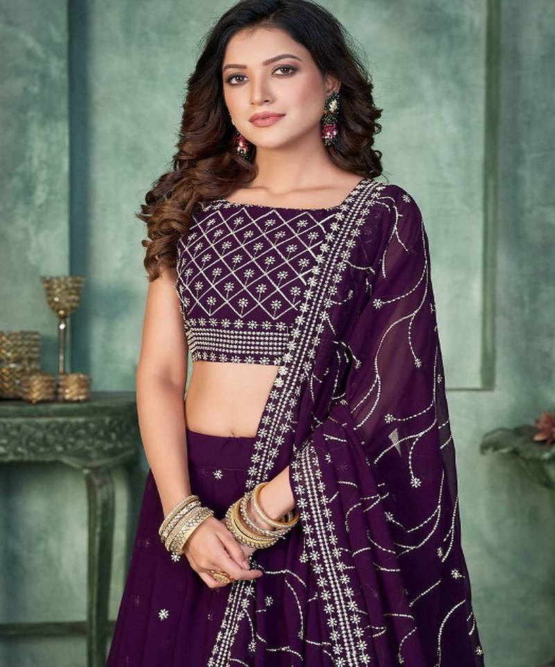 | • | Dupatta | : | Color- Purple / Fabric- Georgette |