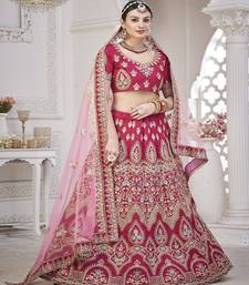 Embroidered thread work semi stitched lehenga & unstitched blouse with dupatta