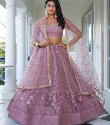 Embroidered thread work semi stitched net lehenga & unstitched blouse with dupatta