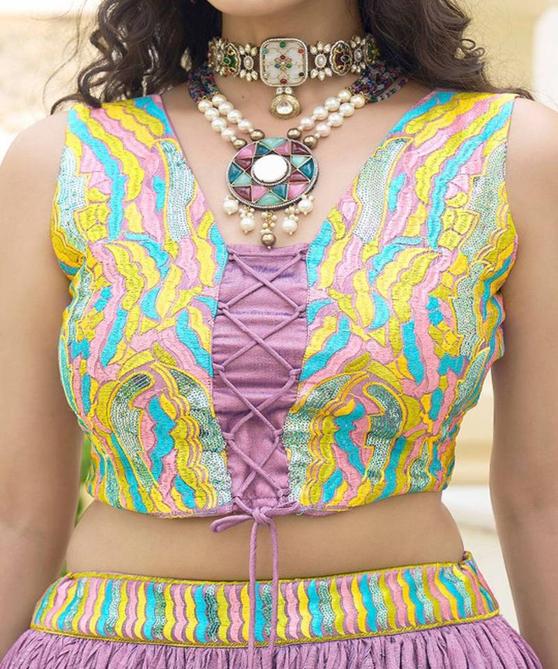 Emroidered thread work ready to wear lehenga & unstitched blouse with dupatta