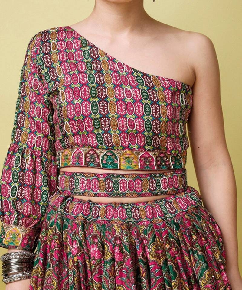 Ethnic motifs printed silk semi stitched lehenga & unstitched blouse with dupatta