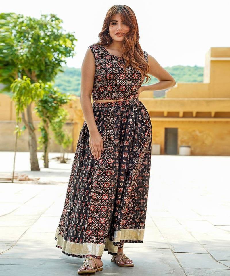 Printed block print cotton ready to wear lehenga & blouse