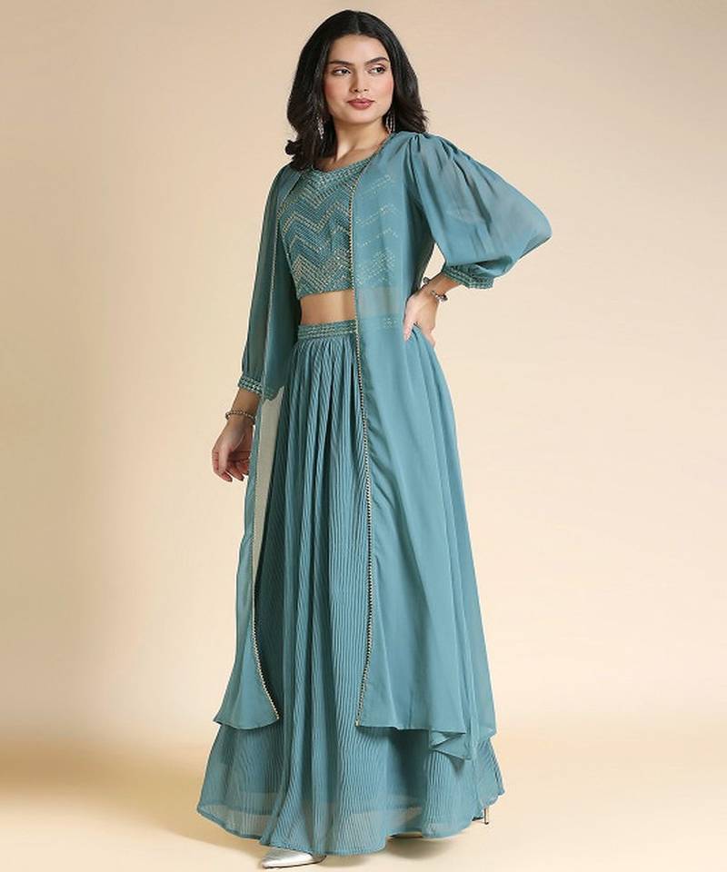 | Product Name | Teal & Gold Toned Embellished Ready To Wear Lehenga Choli With Jacket | |